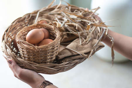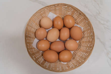 Fresh eggs in a bamboo basket