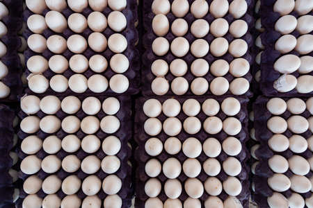 Raw eggs in the paper tray