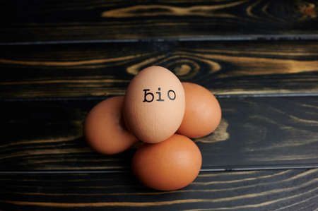 the German word BIO which means in English ORGANIC stamped on an egg lying on others