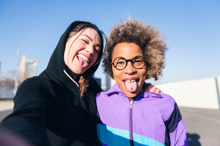 female runner friends taking selfie and having fun