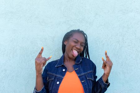 the Happy African American on a blue background
