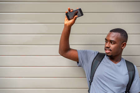Young handsome African man against gray background