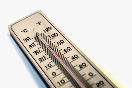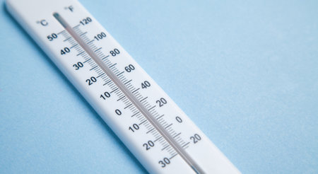 Closeup photo of household alcohol thermometer showing temperature in degrees Celsius