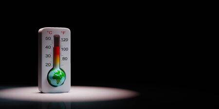 Earth in the Shape of a Thermometer Spotlighted on Black Background with Copy Space 3D Illustration, Global Warming Concept