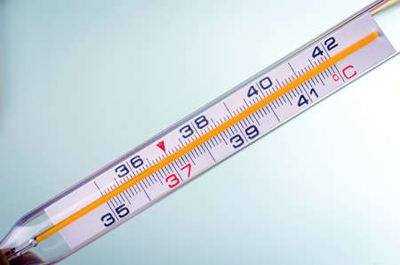 close up of thermometer with 36 and 6 on white