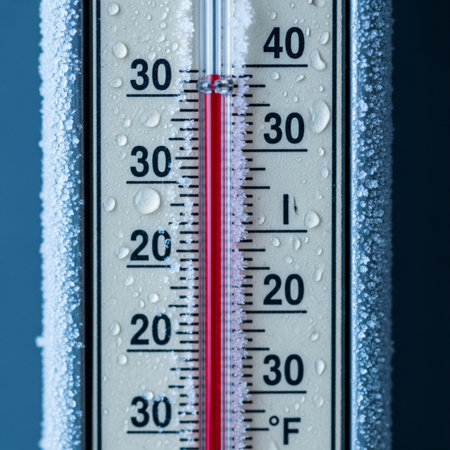 Closeup photo of household alcohol thermometer showing temperature in degrees Celsius