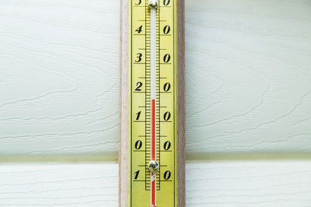 Closeup thermometer showing temperature in degrees Celsius