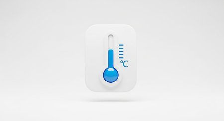 Digital thermometer displays high temperature with a bright red warning icon, signaling a heat alert in a clean and modern setting.