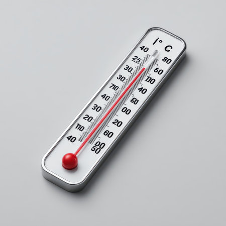 The macro on a blurred background shows a rising temperature