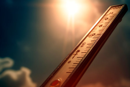 A thermometer displays temperature readings in Celsius with clear markings, set against a dark backdrop emphasizing its details.
