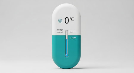A unique, pill-shaped digital device for winter weather forecasting. The half is white with a digital display showing 0