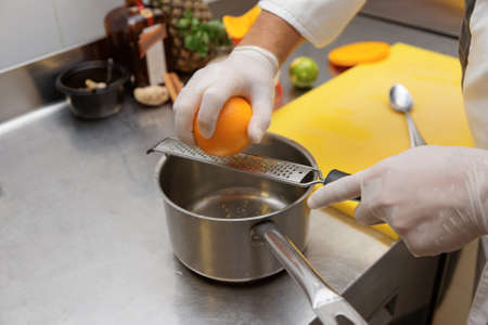chef cooking, Chef preparing food, Chef decorating dish in the kitchen