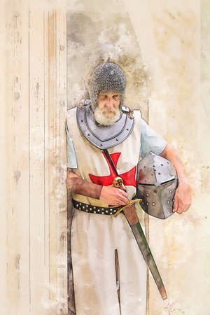 Templar knight in full armor standing ready for battle. Medieval Warrior