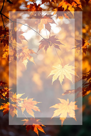 Autumn leaves frame a blank banner in vibrant hues ready for seasonal greetings or messages