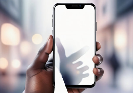 hand holdng smart mobile smartphone with white blank screen