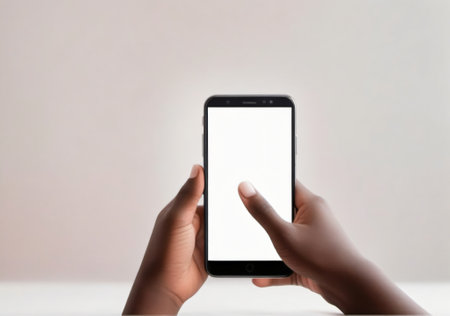 White Screen Smartphone Held by Person's Hand