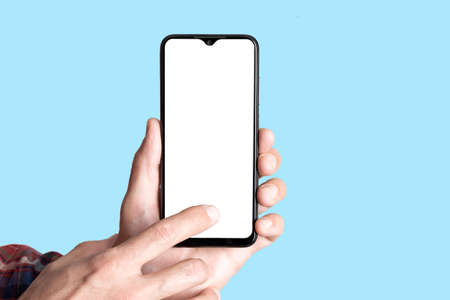 Mock-up technology. Man holds a smartphone in his hands close-up