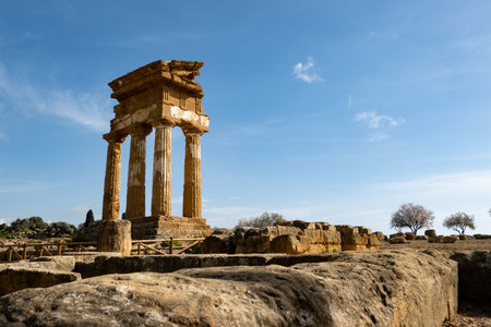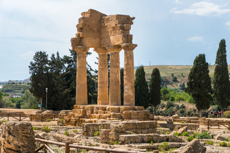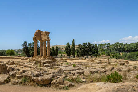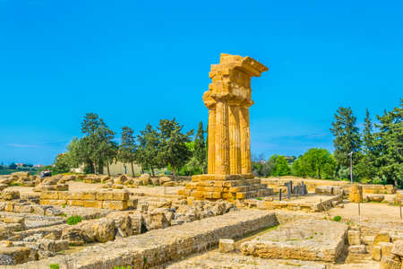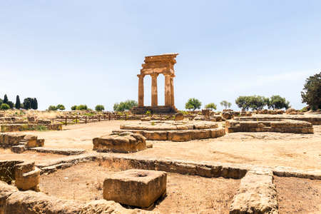 Ruins of Greek Temple of Castor and Pollux in Valley of the Temples in Agrigento, Sicily.