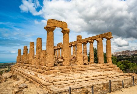 Ruins of the Temple of Juno in the Valley of the Temples in Agrigento, Sicily, Italy