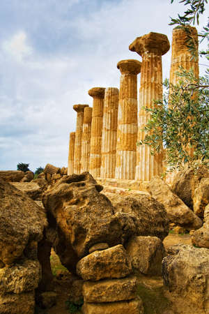 View of ruins of the temple of Hercules in the Valley of temples near Agrigento in Sicily, Italy