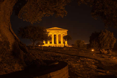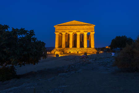 Antique greek temple of Concordia in the Valley of Temples, Agrigento, Sicily, Italy, at night