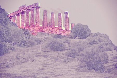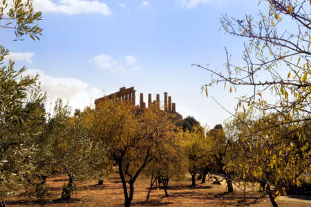 Valley of Temples, Agrigento Sicily in Italy. Famous ancient greek temples of Agrigento, Sicily on a warm autumn day. Mediterranean atmosphere