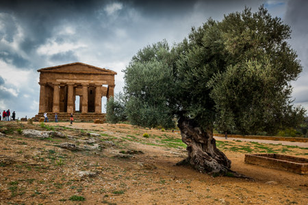 Agrigento, Italy - October 15, 2009: Temple of Concordia ancient Greek landmark in the Valley of the Temples outside Agrigento, Sicily
