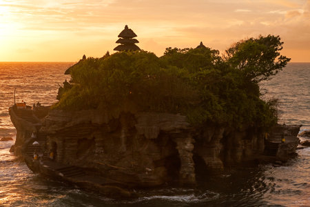 Tanah Lot temple at sunset, Bali island, Indonesia.