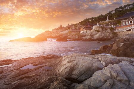 Busan in sunset, Haedong Yonggungsa Temple in Busan, South Korea.