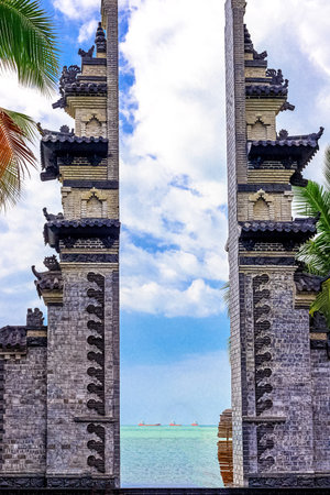 Traditional arch on island Bali on coastline