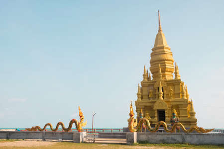 Golden pagoda and temple, Laem Sor Wat on Koh Samui, Thailand.