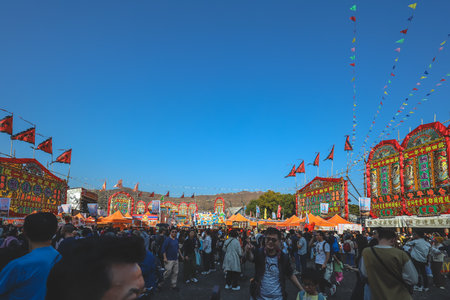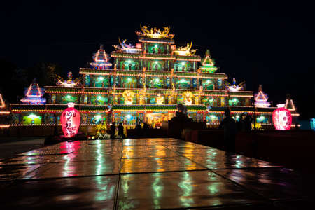 Puli Township, Taiwan -December 02, 2020: colorful building in the night at Chinese altar, Taoist special dedication sacrificial ceremony in Puli township, Nantou, Taiwan