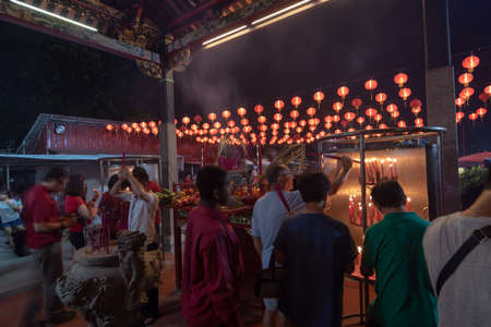 Georgetown, Penang/Malaysia - Feb 20 2018: Devotees pray at snake temple during chinese new year.