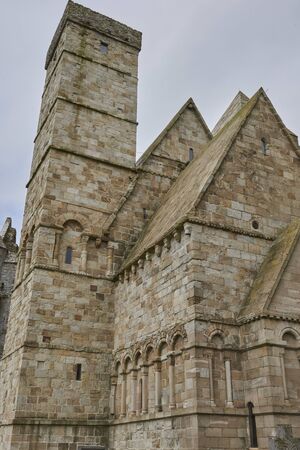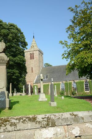 Dunfermline Scotland - September 15 2019: Side view of the beautiful Dunfermline Abbey with clear blue skies, UK September 15, 2019