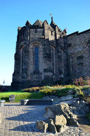 EDINBURGH, SCOTLAND - JULY 17, 2016: Unidentified tourists visit the Edinburgh Castle. The Castle was involved in many historical conflicts since 14th century