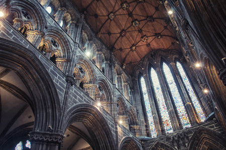 GLASGOW, SCOTLAND - SEPTEMBER 18, 2014: Interiors of Cathedral - an excellent example of Scottish Gothic architecture. It is one of the medieval churches in country that survived the Reformation