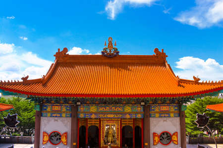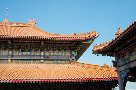 Bangkok, Thailand - January 5, 2019: Art of gorgeous Architecture of Chinese temple style at Wat Leng Nei Yi 2, Thailand. This place is landmark for people travel to worship and exorcise near Bangkok.