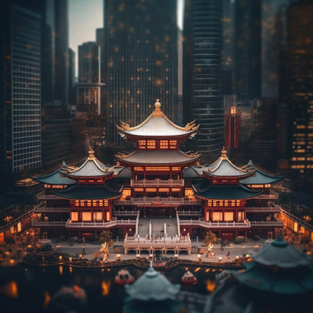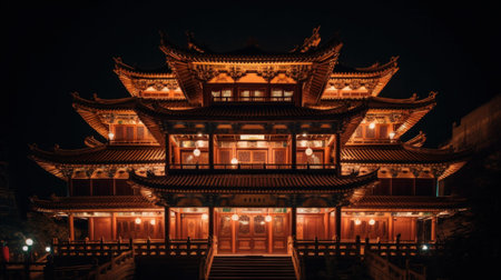 A chinese temple in the city at night
