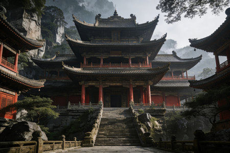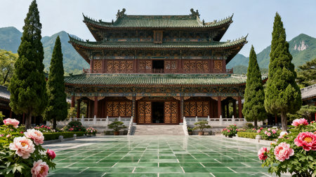 Traditional Chinese Buddhist Temple. Generative AI