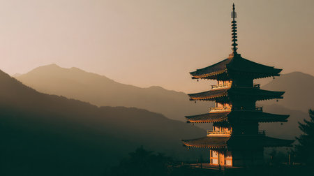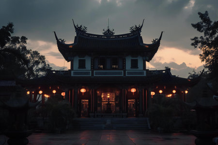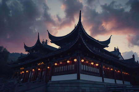Serene Japanese Temple Traditional Architecture, Tranquility,and Cultural Heritage at Dusk