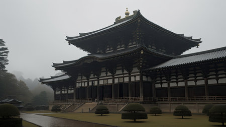 Stunning image of a traditional Asian building set against a soft background, showcasing intricate architectural details and a serene atmosphere.