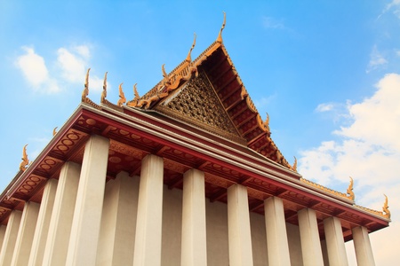 Ancient buddha temple in Bangkok nice bright blue sky background