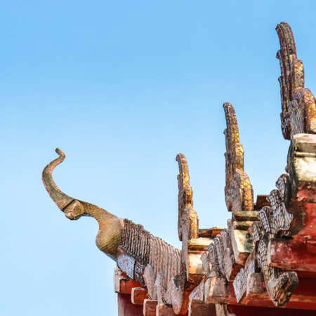 Statue of serpent Thai style stucco on the roof in Bangkok, Thailand