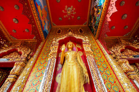 Phetchaburi, Thailand - March, 26, 2018 : Golden Buddha statue of Wat Phra Sri Mahathat Woramahawihan temple in Phetchaburi, Thailand