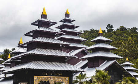 Bangkok, Thailand - January 5, 2019: Art of gorgeous Architecture of Chinese temple style at Wat Leng Nei Yi 2, Thailand. This place is landmark for people travel to worship and exorcise near Bangkok.