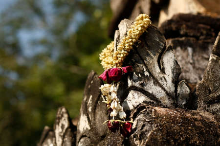drying flowers hanging in the temple grounds in a buddhist temple in Northern Thailand