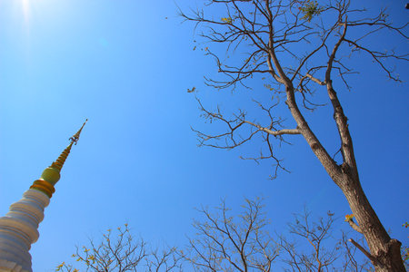 Tree branch on blue sky background.Refreshing and beautiful nature.
