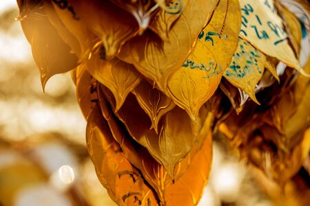 Golden leaves on a tree, Tiger Cave Temple, Wat Tham Sua, Krabi, Thailand, Asia