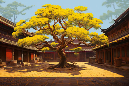 The Bonsai tree in the courtyard of a Buddhist temple.
