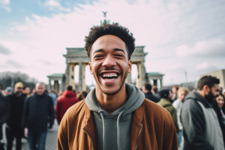 Young african american man in front of the famous Brandenburg Gate in Berlin